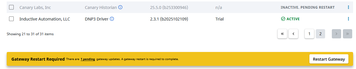 The module will remain inactive until the Gateway is restarted.