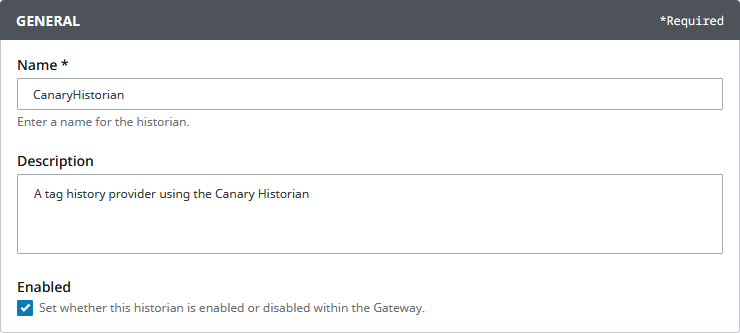 - Enabled - enables/disables the module to retrieve data from the Canary Historian