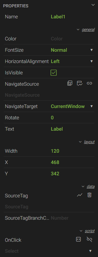 - *OnClick - used to trigger a script that runs when the label is clicked