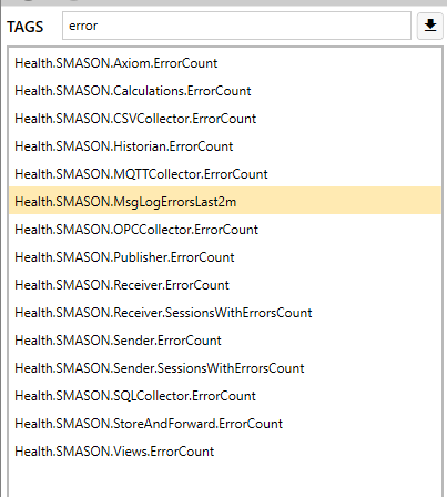 If you have the Diagnostic Health tags enabled through the Admin tile, there is a [MsgLogErrorsLast2m] which measures the number of errors in message log for the last two minutes. There is also an [ErrorCount] tag for each Canary service. I believe these are also in the last 2 minutes.