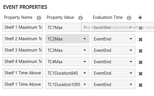 I have created an event that is triggering start and stop just fine. I've created multiple properties in the event that calculate some max and duration of temperatures. The events table in Axiom shows the event but the column selector doesn't even have the option to display event properties. I may just be missing something here....