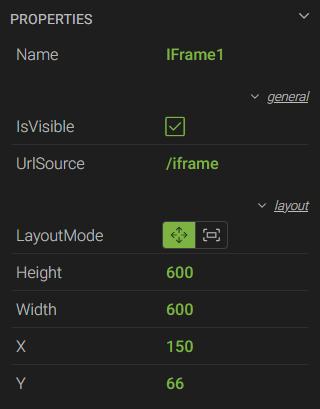 - LayoutMode - sets the size of the control based on the Height and Width properties (Move), or fills the entire space of its parent container (Fill)