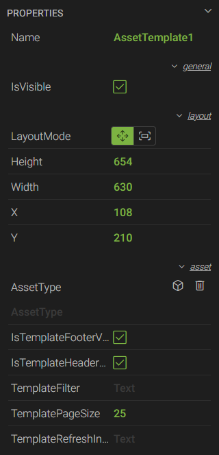 - Refresh Button - forces the asset template to refresh if a filter is applied