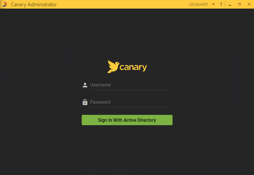 You will first be presented with a login screen where you can provide Windows credentials using a domain account or a local user account. By default, Canary uses Windows AD for authentication.