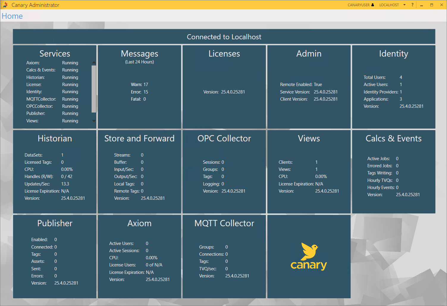 Once installation is complete, the software can be configured by opening the Canary Admin client.