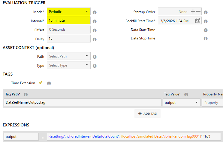 So instead of just calculating once per day over the last 24 hours, this calculates periodically every 15 minutes as the interval grows. Then it resets at midnight and starts over. There's a 4th optional parameter I'm not showing here that allows you to offsets the aggregate interval.
