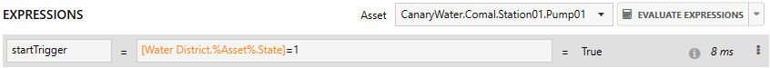 - Create an expression using the functions, tags, and operators from the Expression Builder which will serve as the Start Trigger for the event. The expression should be a conditional statement which will evaluate to true or false. For example:
