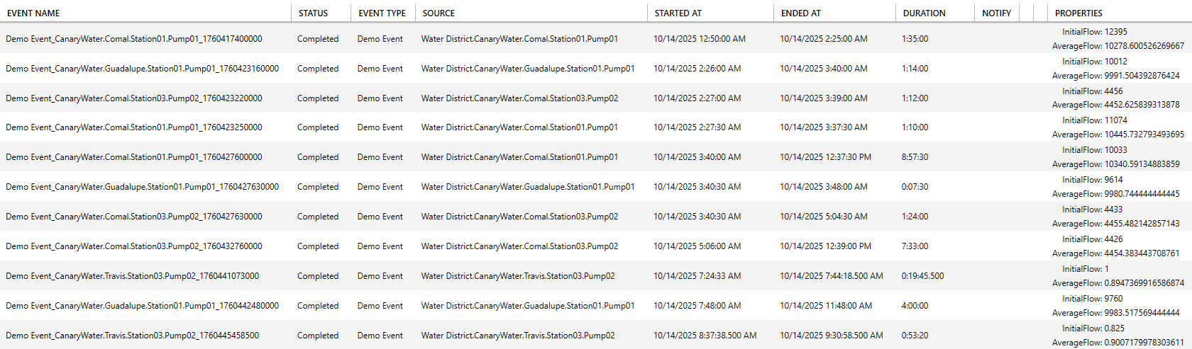 Starting in v25.4, events can be hierarchical having their own child events. This parent-child relationship is only possible through the creation of a Virtual View where parent-child assets are defined. A parent event must be based on a parent asset, and, likewise, the child event based on the child asset. In this scenario, a child event is only monitored whenever the parent event is active. This relationship is indicated on the opening screen of the Calcs & Events tile by indenting the child event beneath the parent.