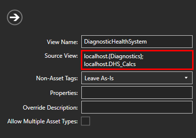 - Update the Source View list to include localhost.DHS_Calcs. This is the DataSet where calculated tags will be written to in the next section. Source Views are separated by semi-colons (;).