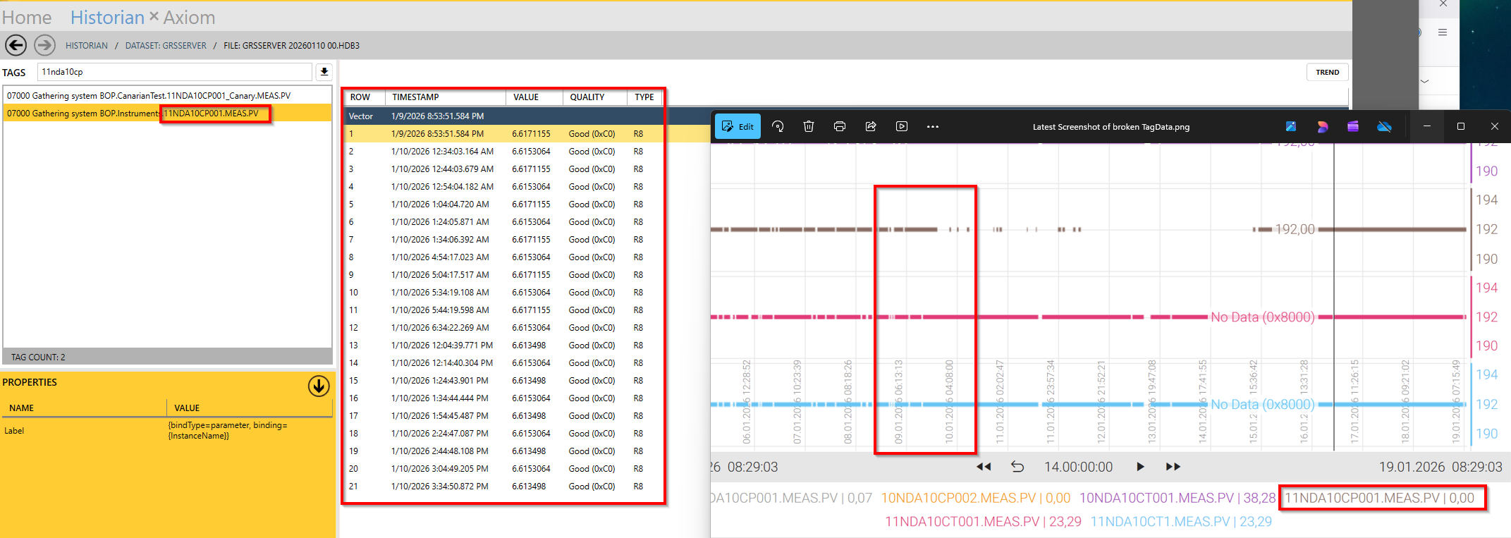 One of the Engineers has started to log some of the "Worst Quality" values for some of their data and are realizing there are a lot of breaks in the data when the system is operating. See attached screenshot.