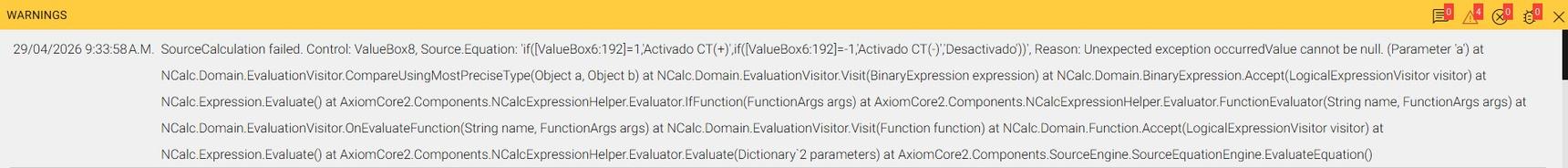 A few days ago, this error message started appearing in some of our Axiom applications, where I display value boxes with conditions (an “if” equation in a calculate control) that depend on the value of a tag in another value box (for example, codes such as 1 = Enabled - 0 = Disabled).