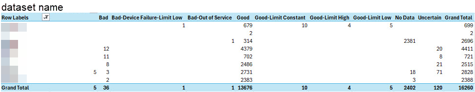 It would be really helpful if we could have # of tags per quality (or even just good/not good) per dataset. That way we could see this in trends and use it for events/alerts like if we had a collector problem somewhere. We have manually done something like this in Excel and played around with pulling these numbers and publishing them through MQTT back to Canary for storage but a "built in" solution would be much better.