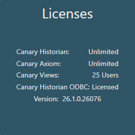 - Canary Historian ODBC - displays "Licensed" if licensed