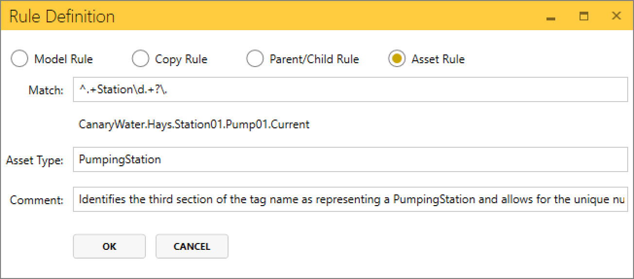 - Asset Rule - identifies asset types within tag name branches and determines how asset instances of those types are named.