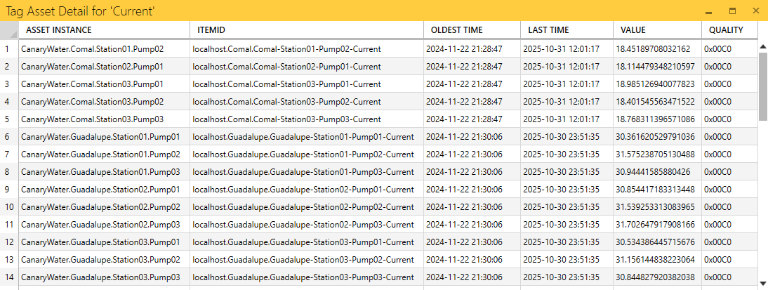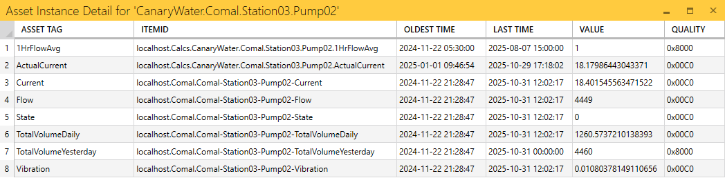 - TAG DETAILS - opens a table displaying the tag's oldest and latest TVQ for each asset instance