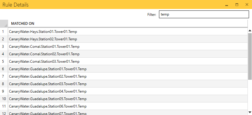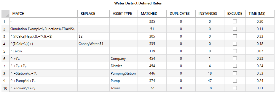 - TIME (MS) - amount of time (milliseconds) it takes to process the rule across the tags. Some rules are more efficient than others based upon the RegEx being used. The less efficient the rule is, the longer it will take for the view to rebuild whenever changes are applied.