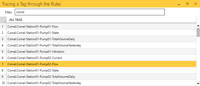 This table contains the RegEx rules used to alias tag names and define asset types. Rules are processed chronologically and can be reordered using a click-and-drag. With a row selected, users can duplicate a rule using Ctrl+V.