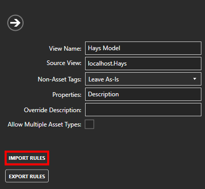 - Click the PROPERTIES button on the right side of the screen then select IMPORT RULES. Browse for the Hays Model Rules.txt file.
