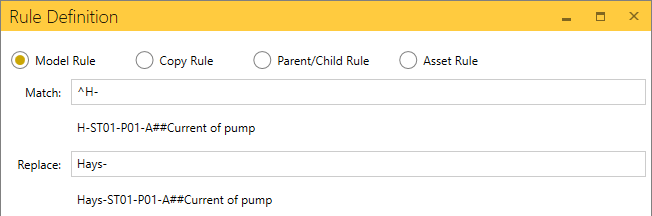 Once the desired tag structure is achieved through a series of Model Rules, the user would then introduce Asset Rules to define asset types at different levels within that structure.