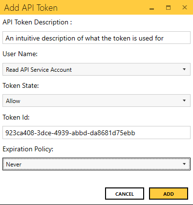Expiration Policy - set to Never or specify a Date - EDIT - modifies the selected API token