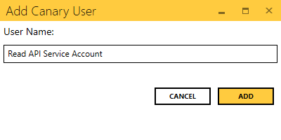 - Enter an intuitive name for the Canary user. Click ADD then APPLY.