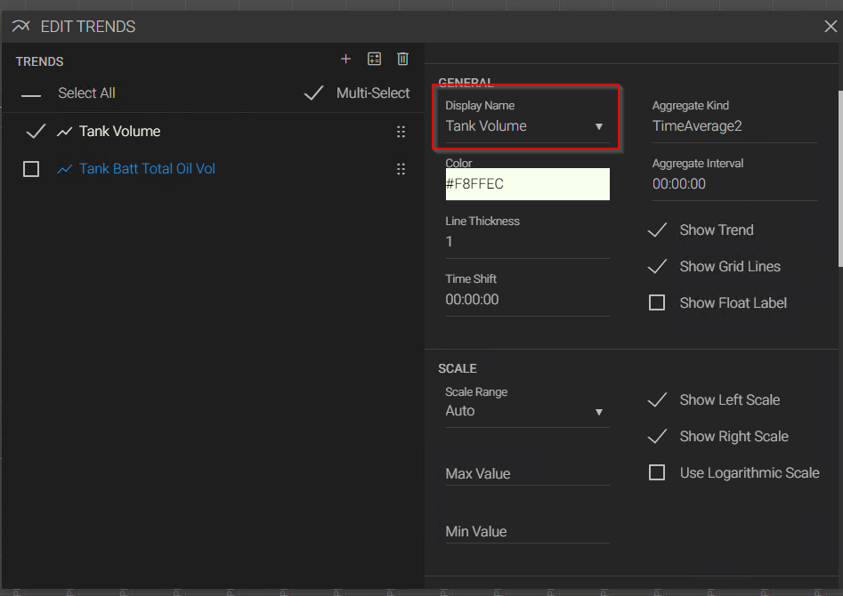 New in V25.5, I can no longer edit the display name of a trend in Axiom. If I try and type anything into the "Display Name" field, it is immediately overwritten with the default settings and reverts back to the defaults. I tried this on two separate Canary 25.5 systems, and both show the same behavior. This is not present in 25.4, which still allows the field to be modified. No errors are reported in the Canary logs.