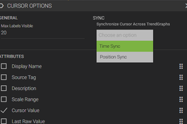 Add the ability to sync the cursor across multiple trend charts either by timestamp or by position (% of width). Add a menu item in the cursor menu to configure this setting for each trend chart.…